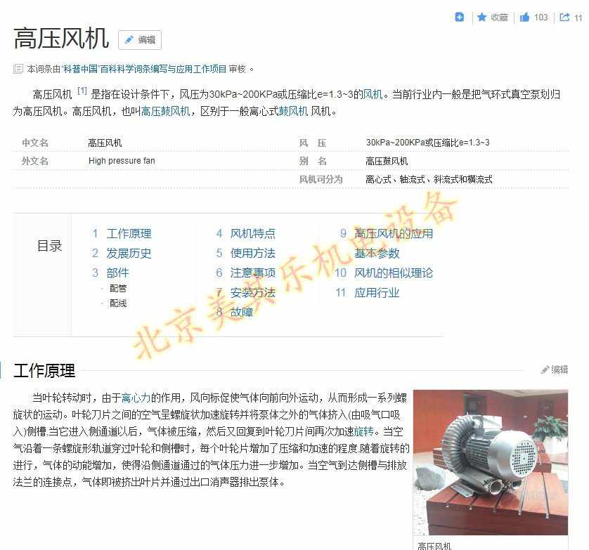 上圖為百度百科對于高壓風機的解釋