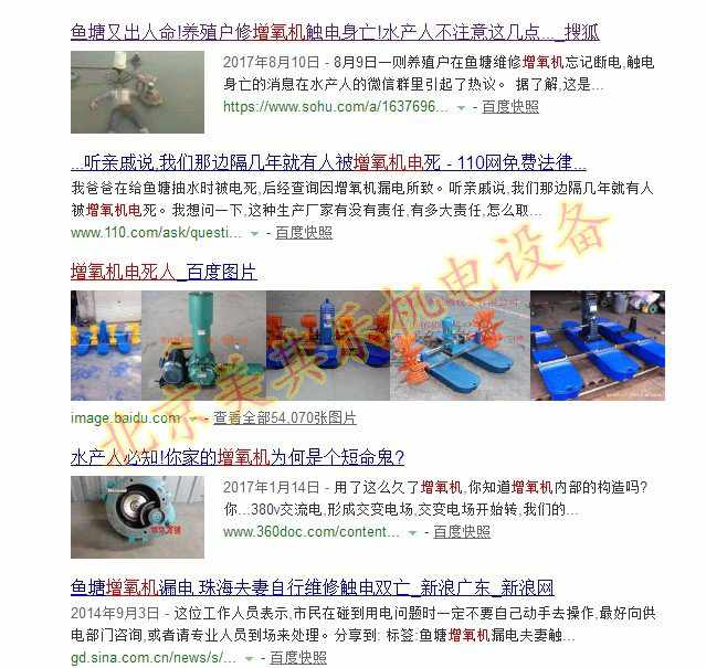 在網(wǎng)上搜索:增氧機安全事故,各種漏電及設備的年久保養(yǎng)不當導致的后果比比皆是,對于我們養(yǎng)殖人來說,其辛苦自不必多說,如果連人身安全都無法行到保證,那么寧愿不從事這個行業(yè),