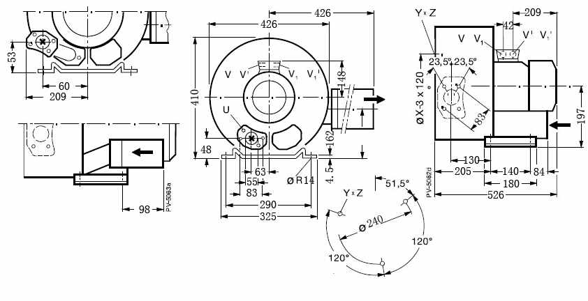 上圖為:4.3kw高壓鼓風機平面尺寸圖