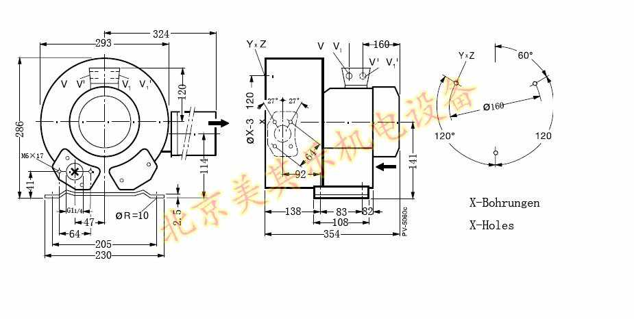 850w雙段旋渦氣泵尺寸圖:
